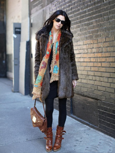 貴婦氣質(zhì)的貂皮大衣氣場爆棚,搭配一條橙色印花圍巾,帶來熱情的溫柔的女人氣息,時尚指數(shù)up!優(yōu)雅又有型。