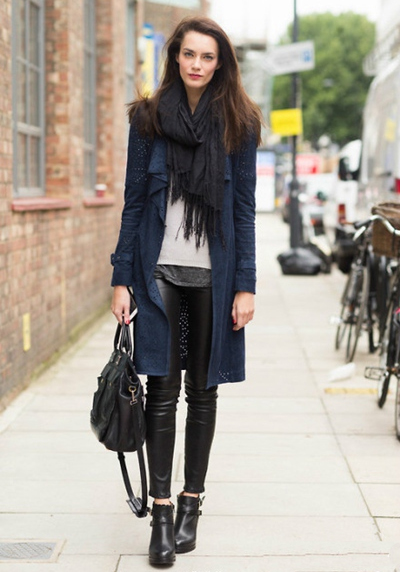 如果不敢嘗試大面積的豹紋單品,圍巾不失為一個最好的豹紋單品選擇,搭配軍綠色的外套和黑色緊身褲,塑造完美的女人身材。