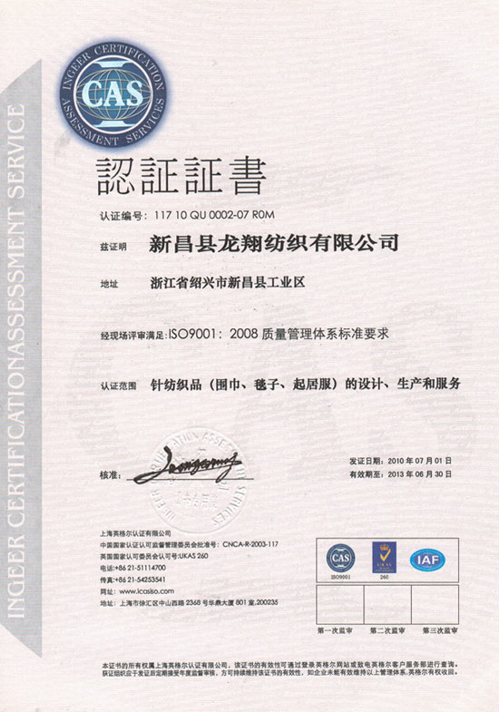 龍翔CAS認(rèn)證證書