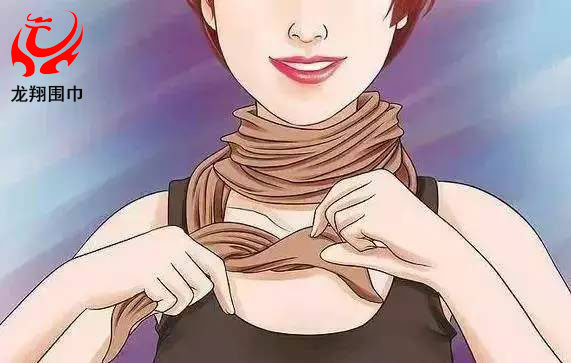 2、把較長的那一邊朝一個方向在脖子上繞兩圈。