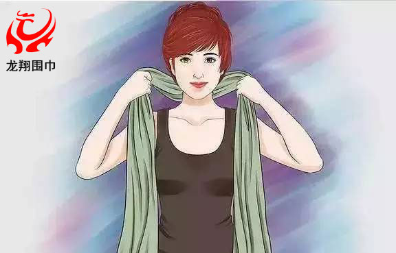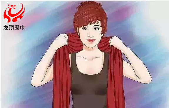 1、讓圍巾自然垂于胸前,兩端長度相近。