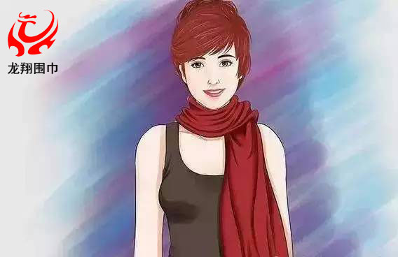 1、讓圍巾自然垂于胸前,一邊比另一邊稍長些。