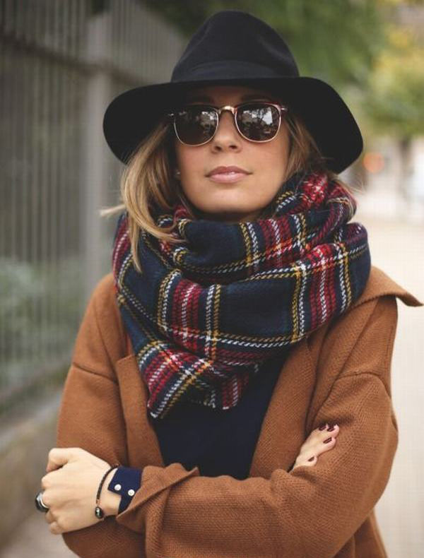 格子更加優(yōu)雅,選擇這樣和外套相配或者撞色的格子圍巾,整體LOOK非常協(xié)調(diào)。