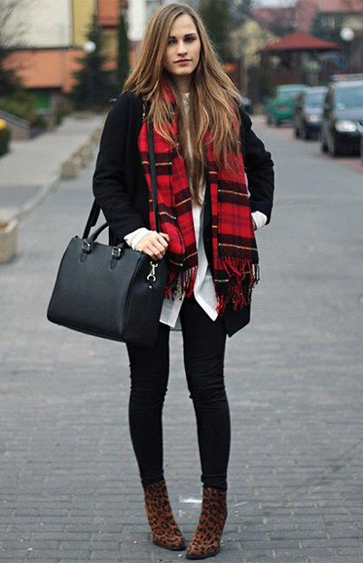 黑色和白色搭配紅色大衣,是一定不會(huì)挨錘的,它們屬于無彩色,全天下的顏色都是它們的情人。如果你的眼光還不錯(cuò),可以嘗試淺灰色的圍巾來搭配,膚色白皙的妹紙,可以考慮搞個(gè)米色的來一條,注意長(zhǎng)度就可以了。
