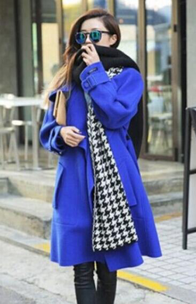 藍(lán)色的外套屬于冷色調(diào),最保守的依然是白色,選擇長(zhǎng)款黑白千鳥格圍巾,還可以搭配出海洋色的效果,清新又很有style~ 另一個(gè)稍微出彩一點(diǎn)顏色,建議可以來?xiàng)l橙色的圍巾,綜合一下,不過熒光橙請(qǐng)慎用,搭的不好會(huì)土的掉渣。
