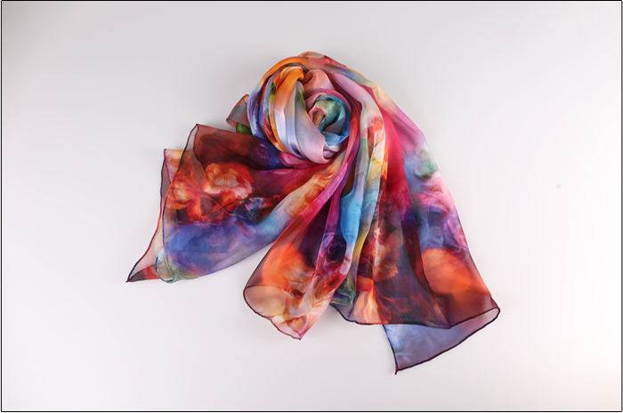 水彩防曬絲巾很有特色,顏色比較鮮明,獨具風(fēng)格,從顏色的暈染到卷邊,美學(xué)上算得上很美麗的。穿白色的T恤遮擋陽光,或者去海邊,穿著波西米亞的裙子,披在肩上,相信超級好看。