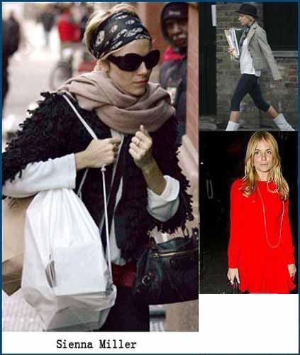 西耶娜-米勒(Sienna Miller):這位型人女王,除了用它來裝飾脖子,還用來當(dāng)發(fā)帶,不用的時(shí)候系在包上,也是另一種時(shí)尚。