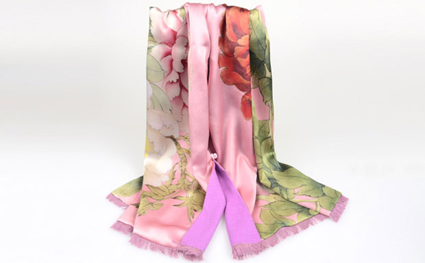 禪心藝術(shù)的圍巾大多是為山水花鳥的真絲絲巾,與龍翔的真絲拉絨底部相融合,成就了一款款高檔的真絲復(fù)合圍巾。