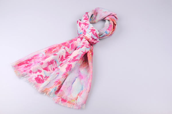 圍巾和披肩在使用時(shí),盡量減少與硬物的磨擦,和尖銳物品的鉤掛。