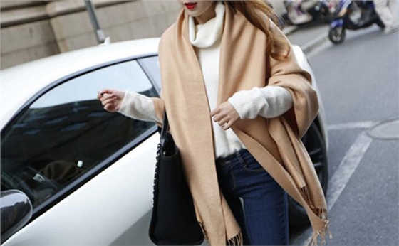 羊絨圍巾是歷久彌新的圍巾之一,它的價(jià)值是不會(huì)貶值的圍巾。因?yàn)檠蚪q是羊毛根部而肉皮之上的絨毛叫做羊絨,是一種非常珍貴的紡織原料,含量少,品質(zhì)高,價(jià)格昂貴是名副其實(shí)的軟黃金。天然羊絨圍巾平滑、柔軟,而富有彈性,手感軟糯絲滑讓你擁有貴族般的享受。光澤柔和,羊絨圍巾具有細(xì)膩滑糯的優(yōu)良特性,那蠶絲般柔和亮麗的天然光澤,具有迷人的誘惑力。羊絨圍巾具有良好的吸濕性和透氣性,圍在頸間,倍感舒適,具有濃郁的自然氣息色彩。