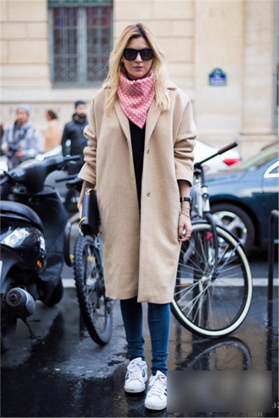 駝色大衣隨處可見,搭配彩色紅格圍巾立馬精神,襯托靚麗的膚色,時(shí)尚潮流。
