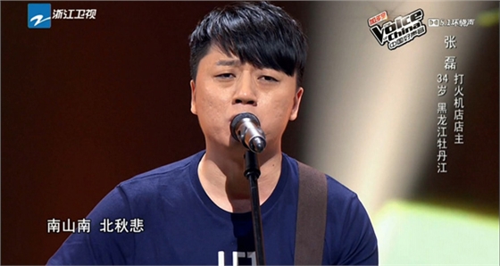 《好聲音》的盲選舞臺(tái)上,張磊抱著吉他演唱的一曲《南山南》,讓這首民謠大火,不過張磊本人卻有些不溫不火的架勢(shì)。在那英和周杰倫組導(dǎo)師對(duì)戰(zhàn)后,張磊開始嶄露頭角,在“鳥巢沖刺夜”獲得高分位列第一晉級(jí)五強(qiáng),將他的聲勢(shì)推到頂峰。