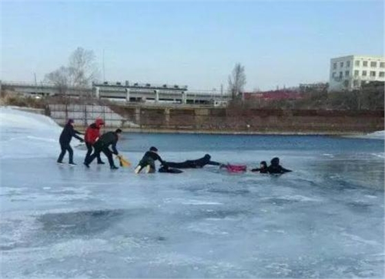然后,“易林云鶴”和微友“端午”的老公開始往附近冰面上爬,后面三個(gè)男子拽住他倆的腳踝,還有人在岸上預(yù)備著,如果有人再落水好去救援。“落水者附近的冰面特別薄,我們根本不敢站起來或者用力。我們讓落水男子把圍巾纏在女子身上,先救女的再救男的。”“易林云鶴”說。