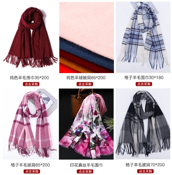 圍巾披肩的款式尺寸有多種,客戶可以根據(jù)需求定制尺寸,如30*180、65*180等。