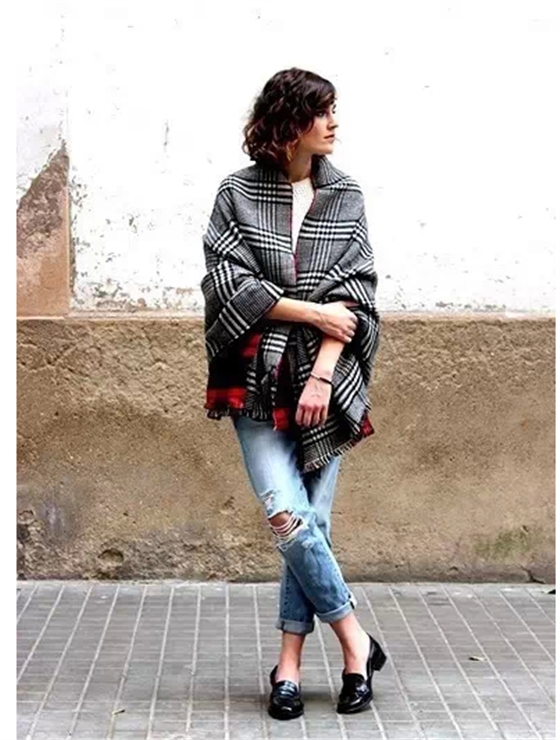 把方的羊絨圍巾當(dāng)做斗篷或者披肩來(lái)披可算是時(shí)下最“夯”的穿法了。不但沒(méi)有外套、大衣那么臃腫,反而能讓你“走路有風(fēng)”做個(gè)性感又迷人的“風(fēng)一般的女紙”。